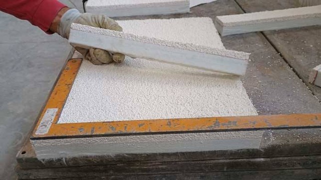 Section of the composite panel for fire protection of FRP systems: insulating layer and cement-based plaster integrated into a reduced thickness.