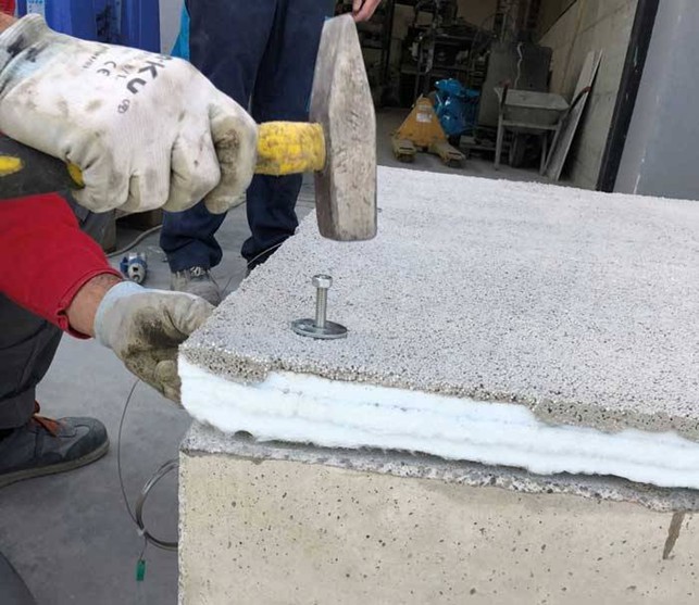 Mechanical fastening test of the passive fire protection panel on a concrete substrate: verification of the stability and anchorage of the system protecting the FRP reinforcement.
